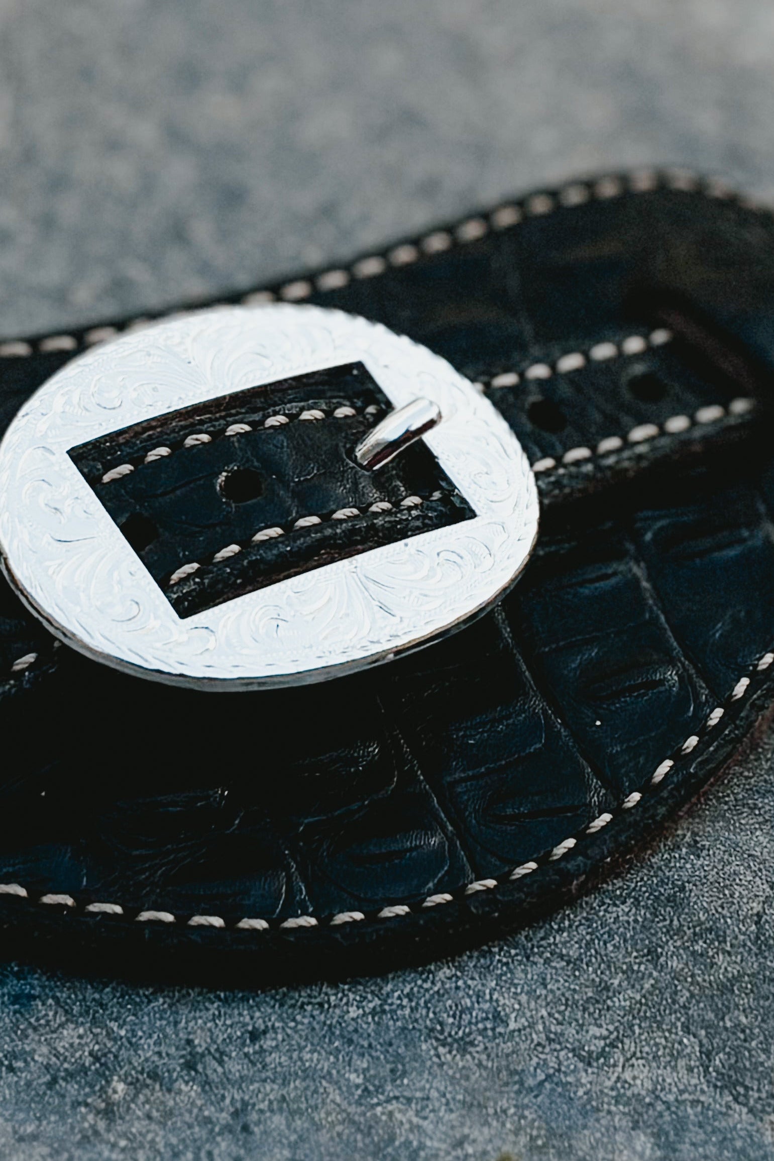 Premium Materials: Crafted from deep black crocodile printed leather for a rich, textured finish.